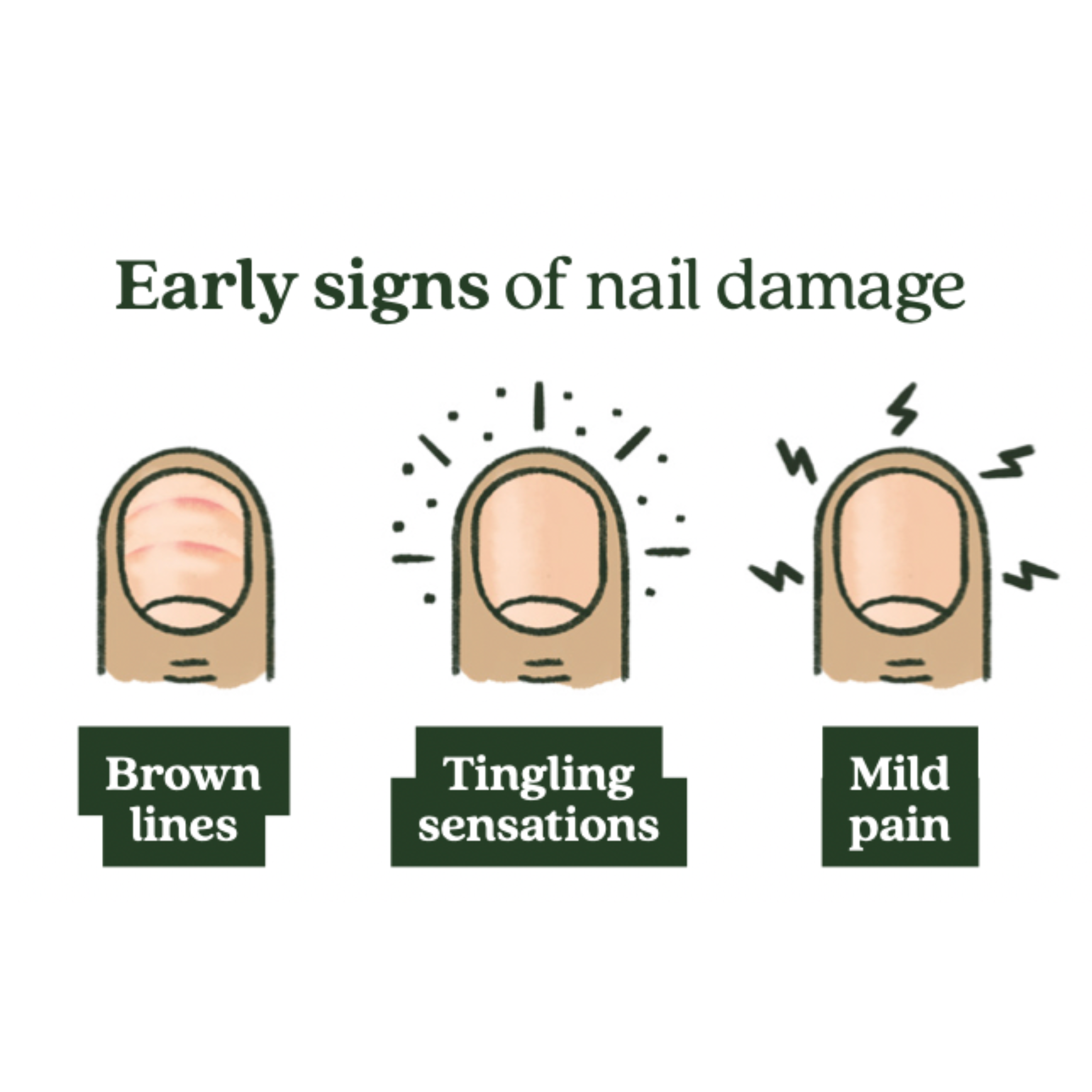- Early Signs: Start immediately if tingling, pain, or brown lines