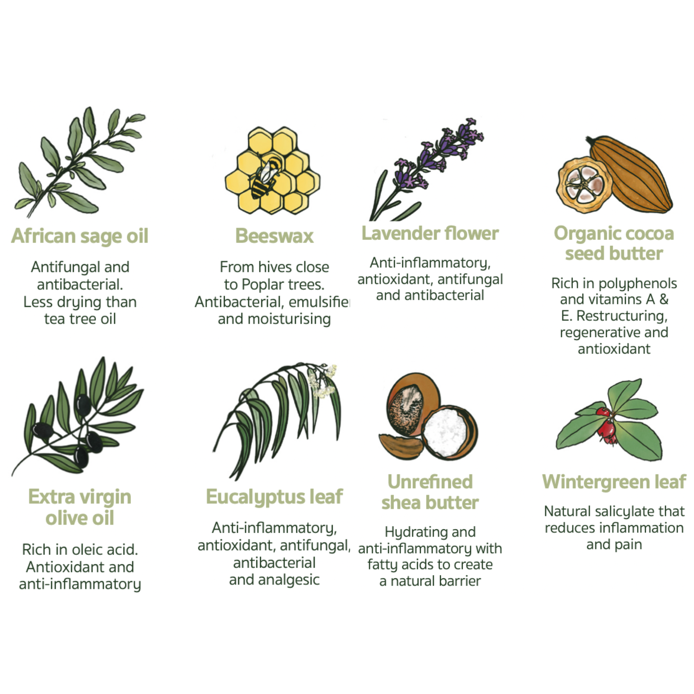 - Shea Butter and Wintergreen: Hydrating, barrier-forming, and naturally analgesic.