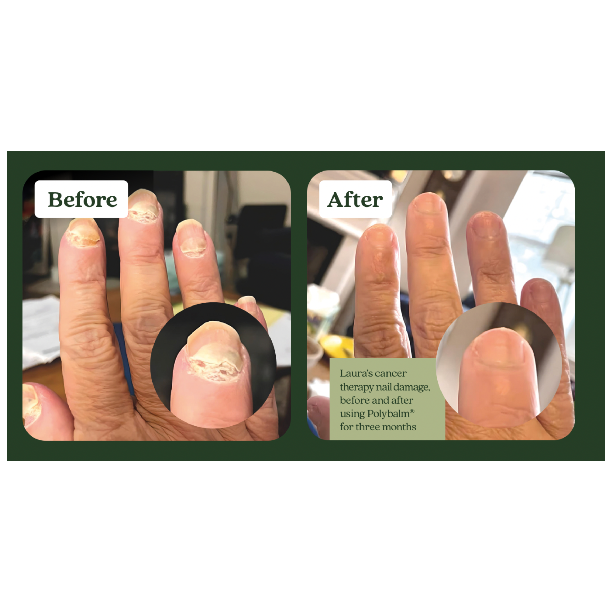 “I used Polybalm throughout my chemo. Five months on I still have my nails. I found Polybalm easy to use and effective.” – Cancer patient